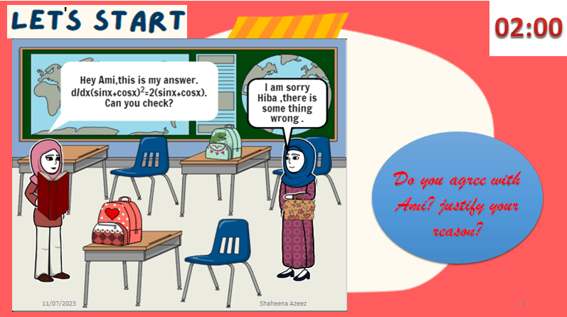 Error analysis is a crucial skill that students need to acquire during their mathematics learning. However, when it is presented as a timed task, it often appears challenging for students. I attempted to introduce a new approach to foster this skill in my AP Calculus lesson. As a warm-up activity, I incorporated a small task that utilized a storyboard and encouraged students to engage in picturization and peer discussions. This interactive method surpassed mere calculations and genuinely captivated the students, resulting in an enjoyable learning experience.