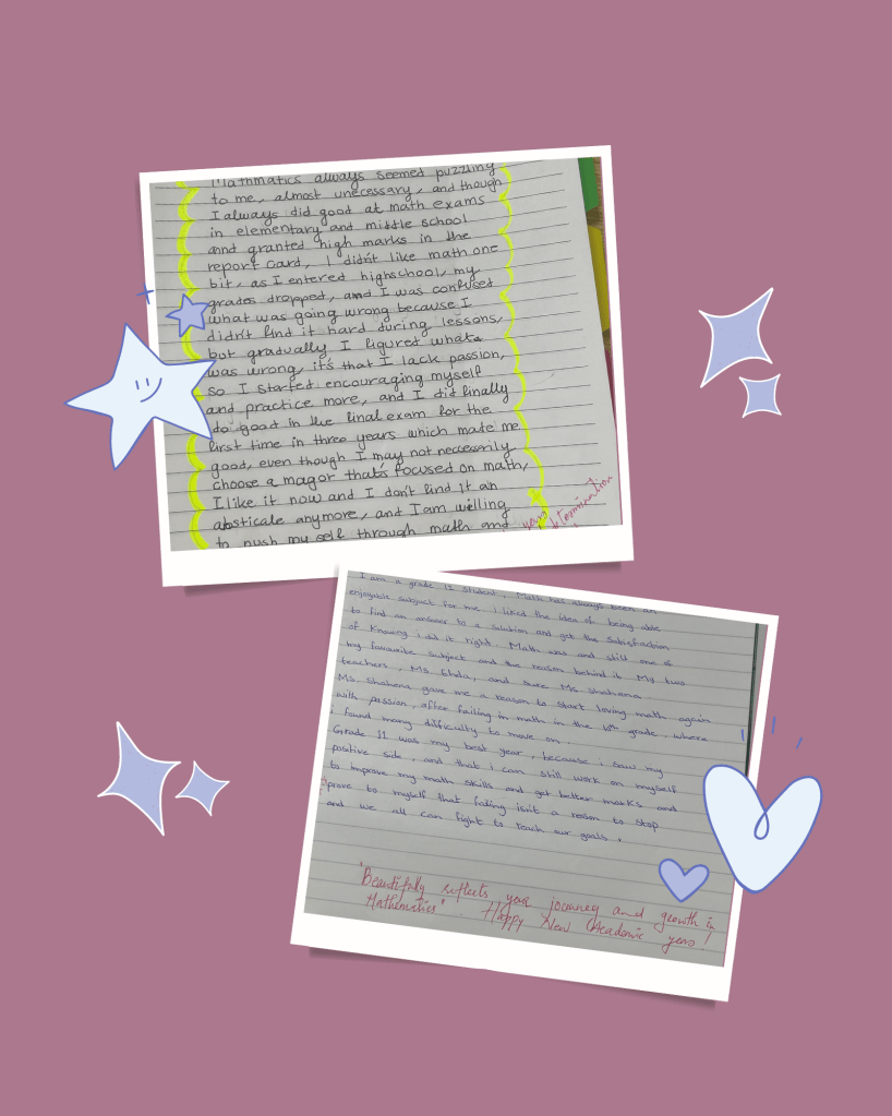 Yet, it’s important to recognize that not all stories are filled with achievements . The online learning during the pandemic posed unforeseen difficulties for some students. Many have confessed to struggling with math, feeling disconnected from new concepts and unable to relate them to what they had learned before. For some, high school marked the point where the joy of numbers started fading away. It’s a reminder that, as math educators, we have a diverse group of learners in our classrooms, each with their own struggles and challenges. These math autobiographies serve as a wake-up call, urging us to be more than just instructors. We must be mentors, offering guidance and support to illuminate that passion for math, even in the face of hardships .