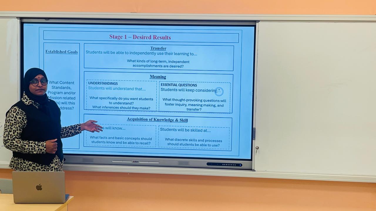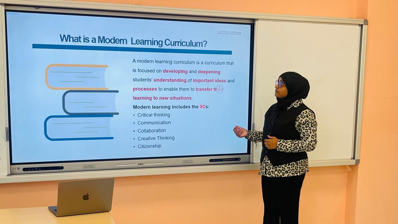 Conducting a specialized training session on ‘Leading Modern Learning’ for Cycle 3 Math Teachers at Zayed Educational Complex, Al Rahmaniya, Sharjah.
